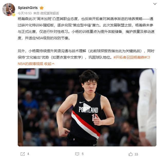 楊瀚森若想真正在波特蘭站穩(wěn)腳跟,就必須用實(shí)際表現(xiàn)為自己正名,至少要讓所有人看到他不可替代的作用。