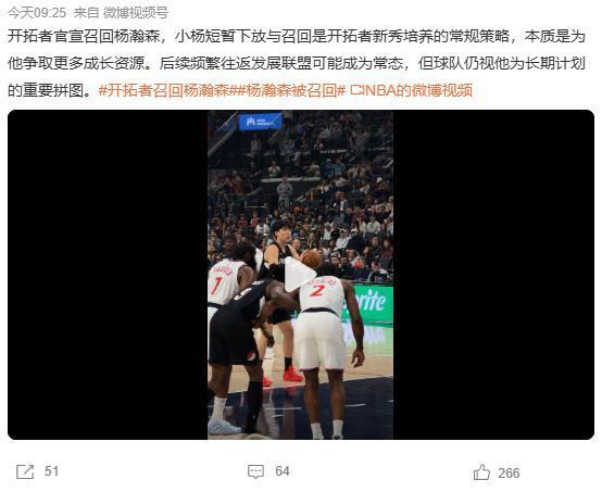 開(kāi)拓者剛剛將楊瀚森下放至發(fā)展聯(lián)盟“撕裂之城混音隊(duì)”僅24小時(shí),便迅速將其重新召回,目的正是為了備戰(zhàn)即將在主場(chǎng)迎戰(zhàn)湖人的關(guān)鍵戰(zhàn)役。