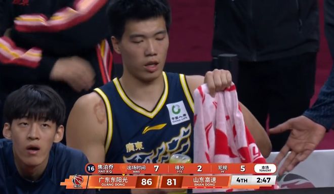 昨晚焦泊喬不光讓廣東球迷失望了,也讓杜鋒看的有點(diǎn)難受,上半場杜鋒給了焦泊喬穩(wěn)定的輪換出場時(shí)間,但焦泊喬上半場出戰(zhàn)僅2分45秒就送出3次犯規(guī),再度給杜鋒的排兵布陣出了難題,下半場杜鋒繼續(xù)再給焦泊喬機(jī)會(huì),但焦泊喬下半場一共3次出手又是一分不得,還在第三節(jié)期間貢獻(xiàn)了一記五尬球表演,快攻一打零起飛暴扣,結(jié)果因?yàn)槠鹛叨炔粔蛑苯涌埏w,摔了個(gè)踉蹌不說,還差點(diǎn)把自己摔傷了。
