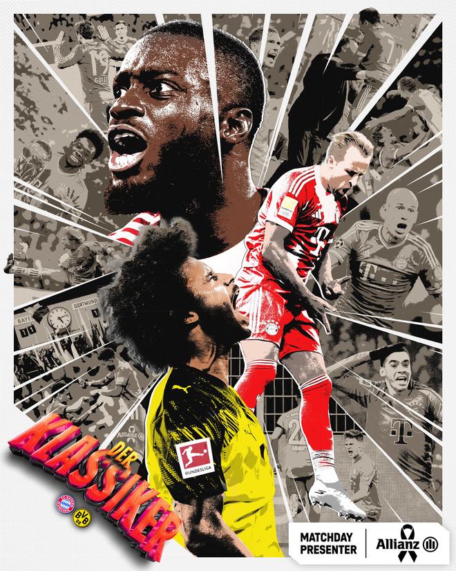 此外,拜仁慕尼黑官方同樣為本場比賽準備了預(yù)熱海報,整體更偏向漫畫風格,在高亮顯示的于帕、凱恩與阿德耶米身后,還包含許多個德國國家德比歷史上的經(jīng)典場景。