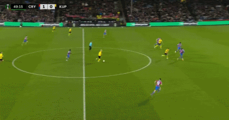 第5分鐘,德文尼助攻,烏切內(nèi)切后外腳背射門得分,水晶宮1-0古比斯