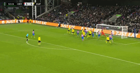 第50分鐘,薩瓦萊寧助攻,帕茲切克推射破門扳平比分,古比斯1-1水晶宮